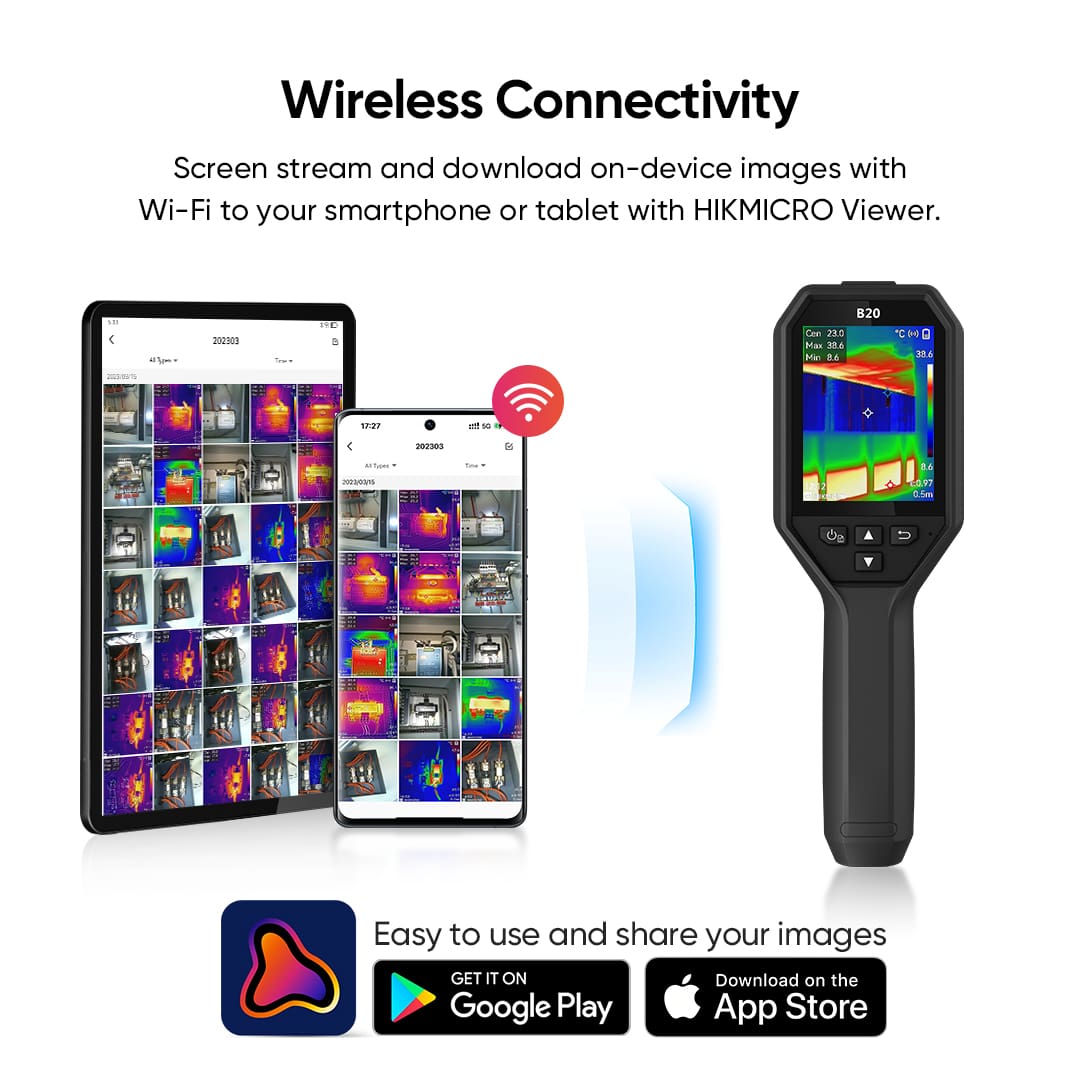 De HIKMICRO B-serie bestaat uit compacte, gebruiksvriendelijke warmtebeeldcamera’s voor dagelijks gebruik. Het 3,2″ LCD-kleurenscherm, de hoge beeldkwaliteit en snelle beeldfrequentie zorgen voor heldere warmtebeelden en vloeiende beeldopnames. In combinatie met de handige functies en mogelijkheden, zijn de warmtebeeldcamera’s uit de B-serie ideaal voor uiteenlopende werkzaamheden zoals het opsporen van elektrische problemen, de inspectie van HVAC of gebouwen.