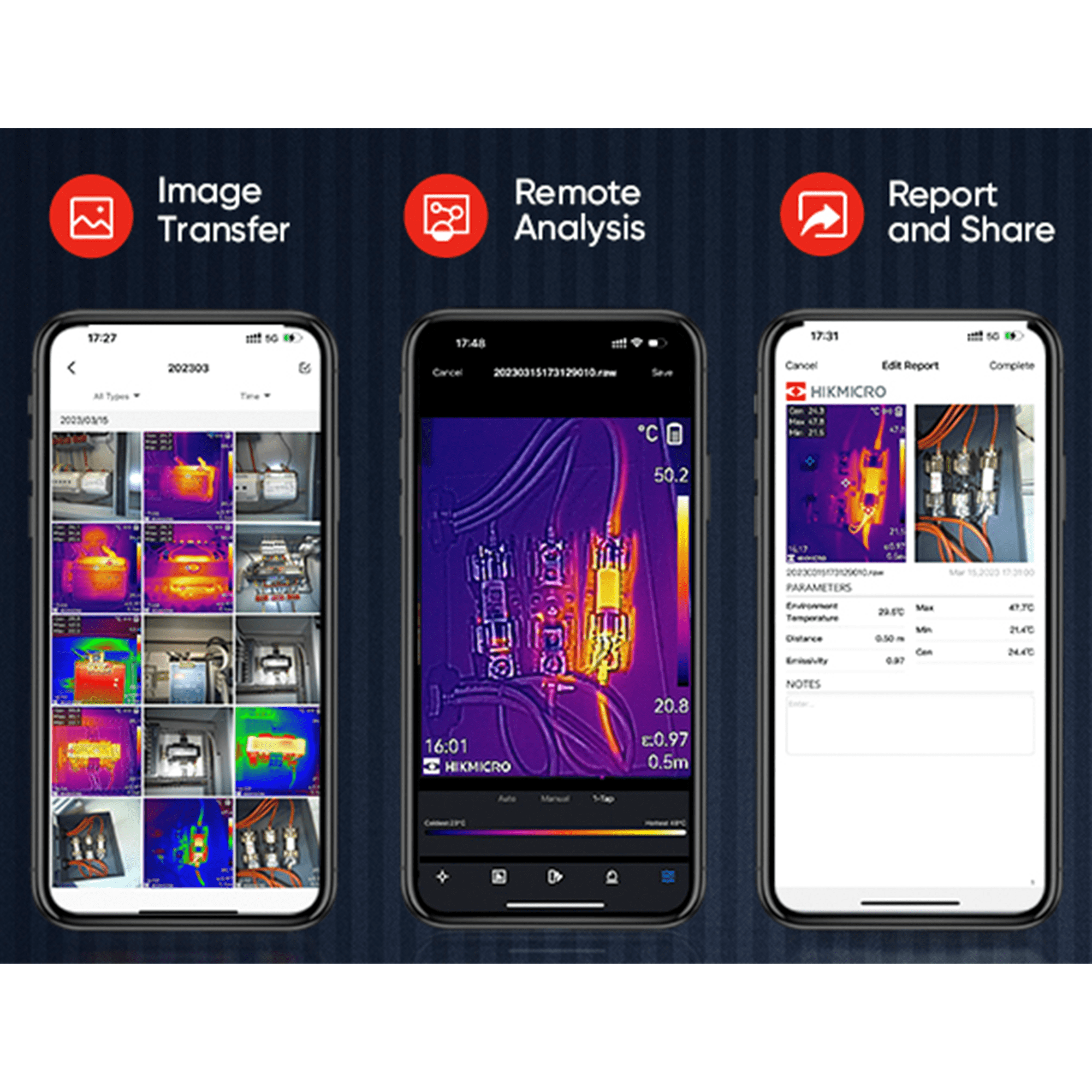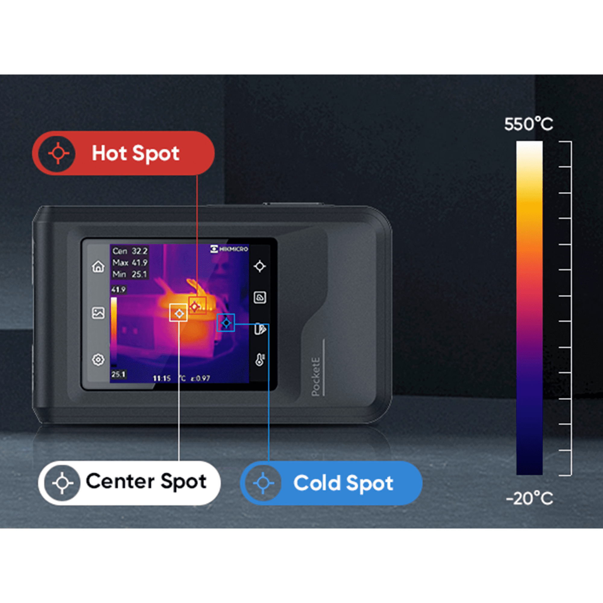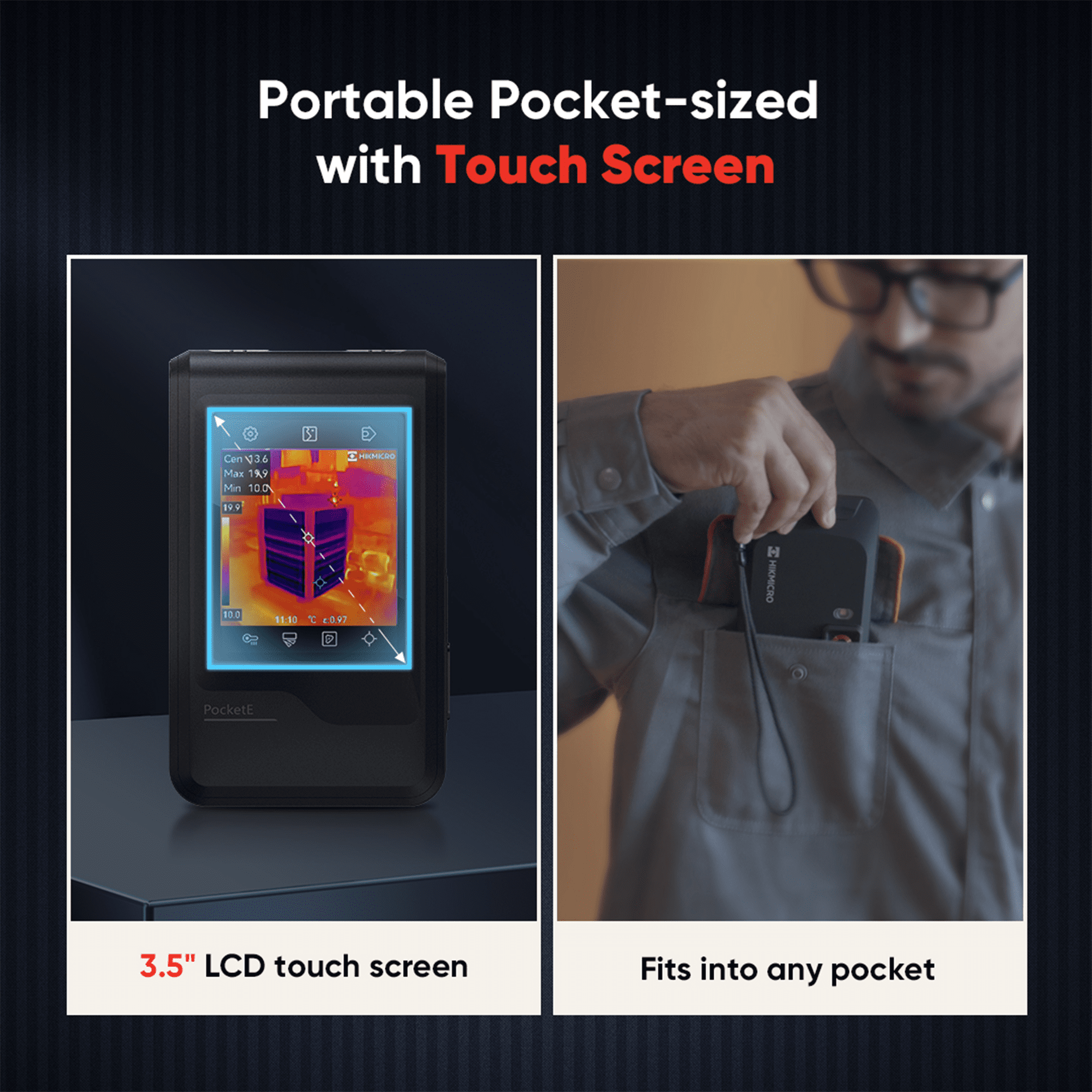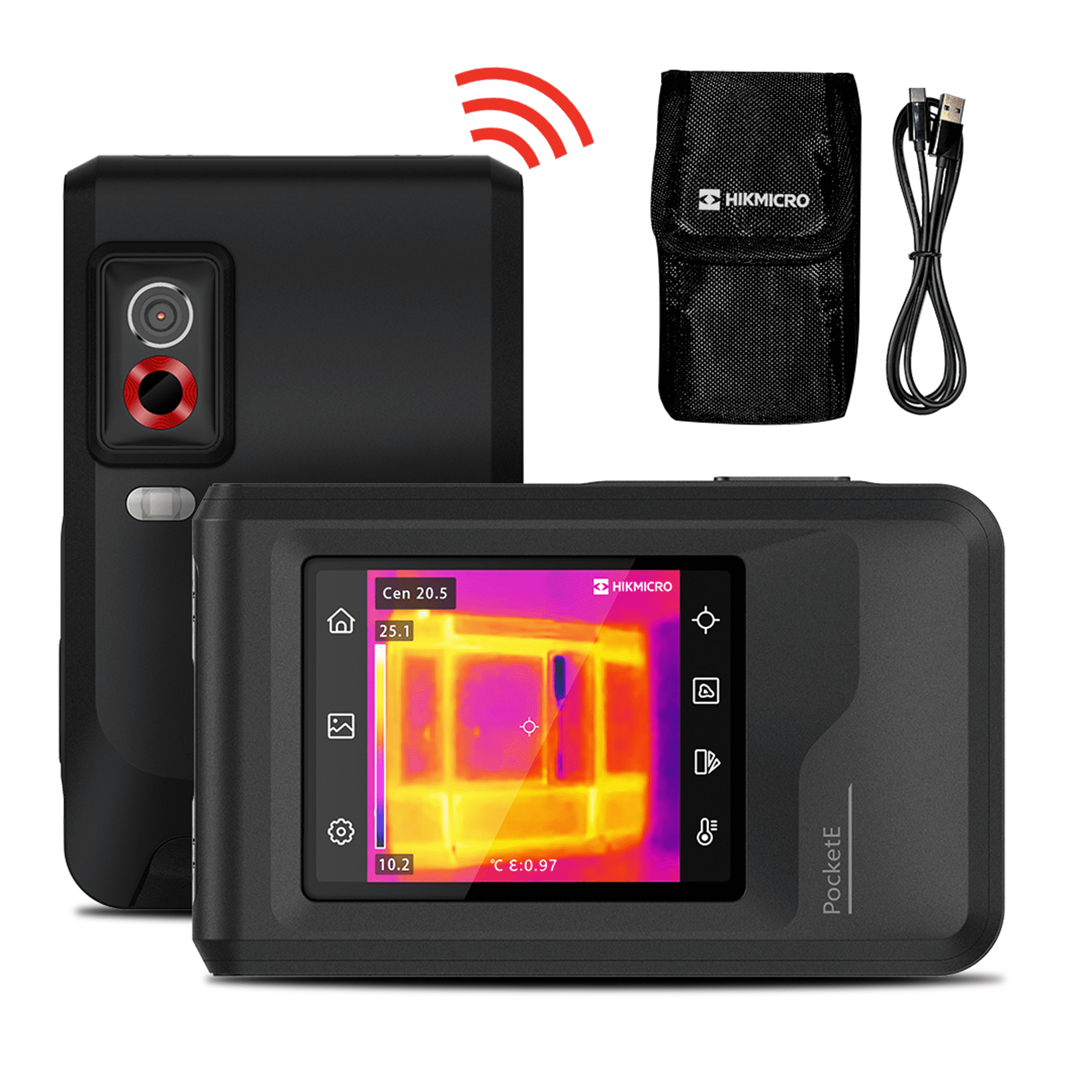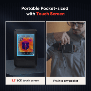 Dankzij het compacte formaat, neem je de Pocket E makkelijk overal mee naartoe. Inspecteer oppervlakken op het grote LCD 3.5” touch screen en stream of download de opnames via wifi naar je smartphone of tablet. Via de gratis HIKMICRO Viewer app bekijk en anlayseer je de opnames terwijl je nog op locatie bent.