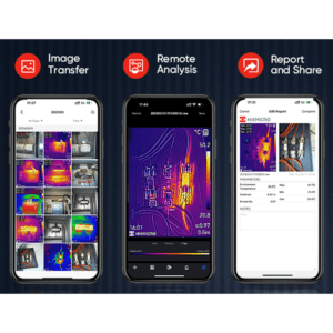 Met de ingebouwde IR-camera en visuele camera kun je schakelen tussen 5 beeldmodi: Thermisch, Visueel, PIP, Fusion en Blending. ‘Thermisch’ is het warmtebeeld en ‘Visueel’ wat je ook met het blote oog ziet. “Fusion” combineert belangrijke details van de visuele camera met het warmtebeeld van de IR-camera. Dit zorgt voor extra details en helderheid. “Blending” mengt gedeeltelijk transparante infrarood- en zichtbare beelden in één beeld. Je kunt daarbij zelf de transparantie aan te passen. “PIP” legt een vast gedeelte van een warmtebeeld over een digitale foto om de locaties van afwijkingen te verduidelijken.